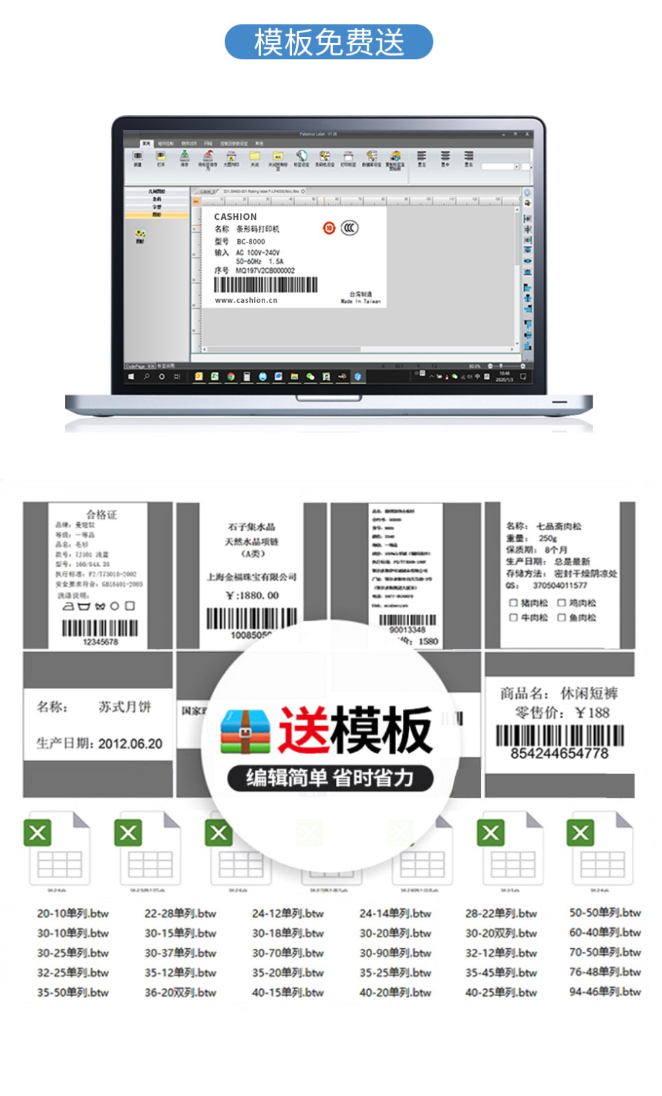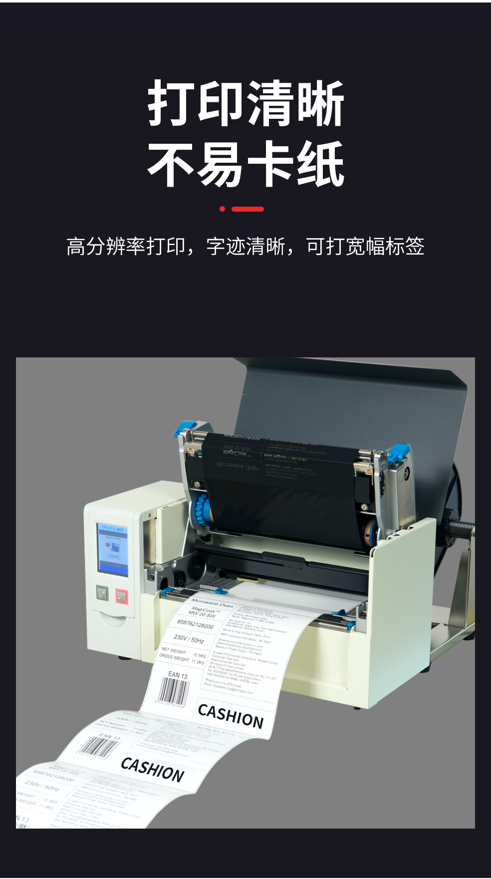 - 自動感測節(jié)省使用耗材的CASHION C-204條碼打印機(jī)