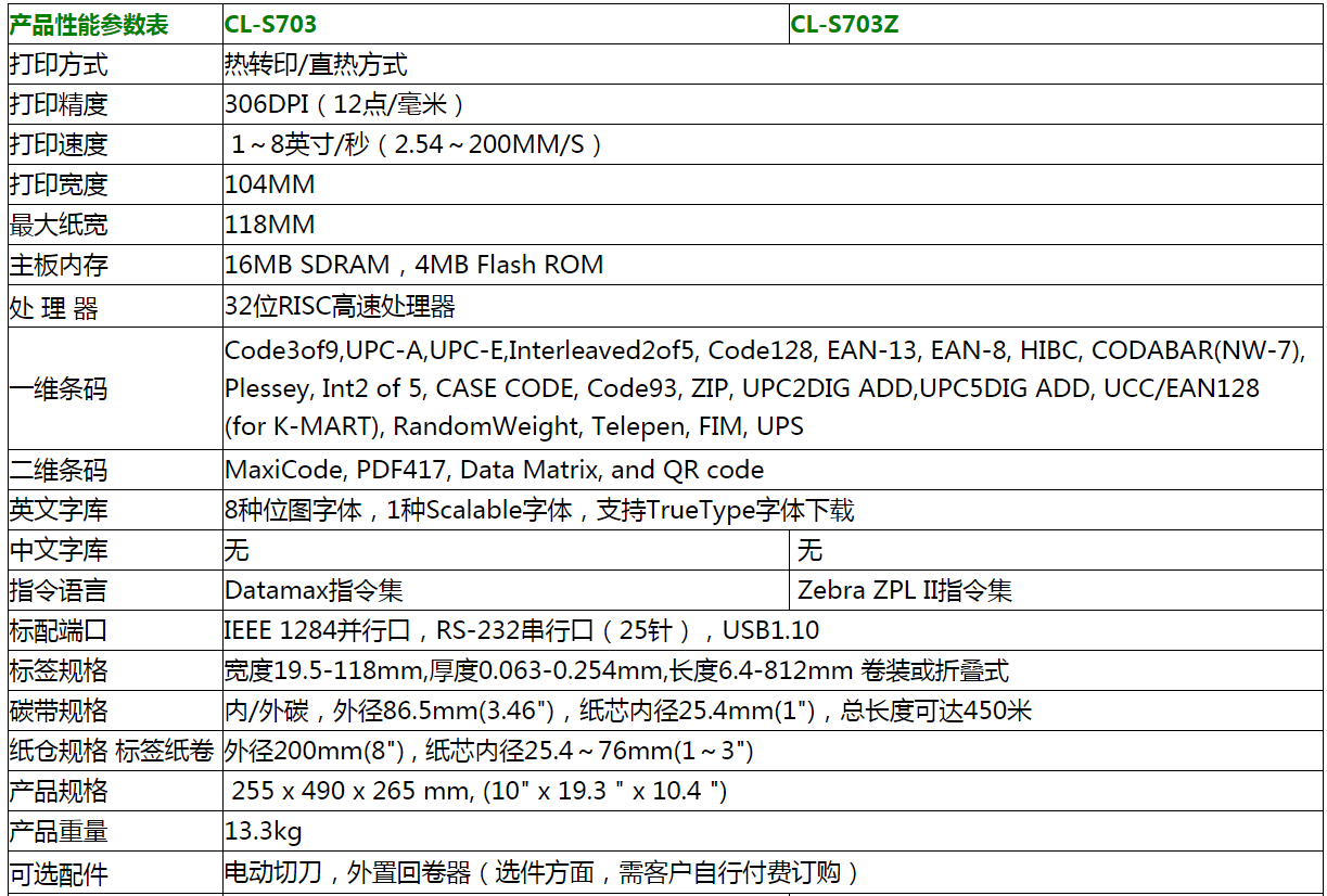 CITIZEN西鐵城CL-S703是一款306分辨率打印精度的重工業級條碼打印機,打印清晰度高,速度快,重工業強度等級,32位高速CPU,20M大容量內存,ARCP防皺、防滑和前規定位結構.打印品質優秀、穩定、打印頭耐用;主要應用在高要求品質的制造業、物流、服裝類、行政單位、銀行、公路等客戶群,產品操作極具人性化,提供售后維修服務.