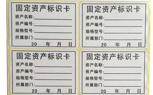 固定資產(chǎn)標(biāo)簽是用于區(qū)別固定資產(chǎn)的一種特定標(biāo)識;資產(chǎn)標(biāo)簽上一般有資產(chǎn)名稱、資產(chǎn)編號、規(guī)格型號、所屬部分、相關(guān)日期等信息。固定資產(chǎn)標(biāo)簽又稱固定資產(chǎn)標(biāo)簽紙,固定資產(chǎn)管理標(biāo)簽,固定資產(chǎn)標(biāo)簽貼等。